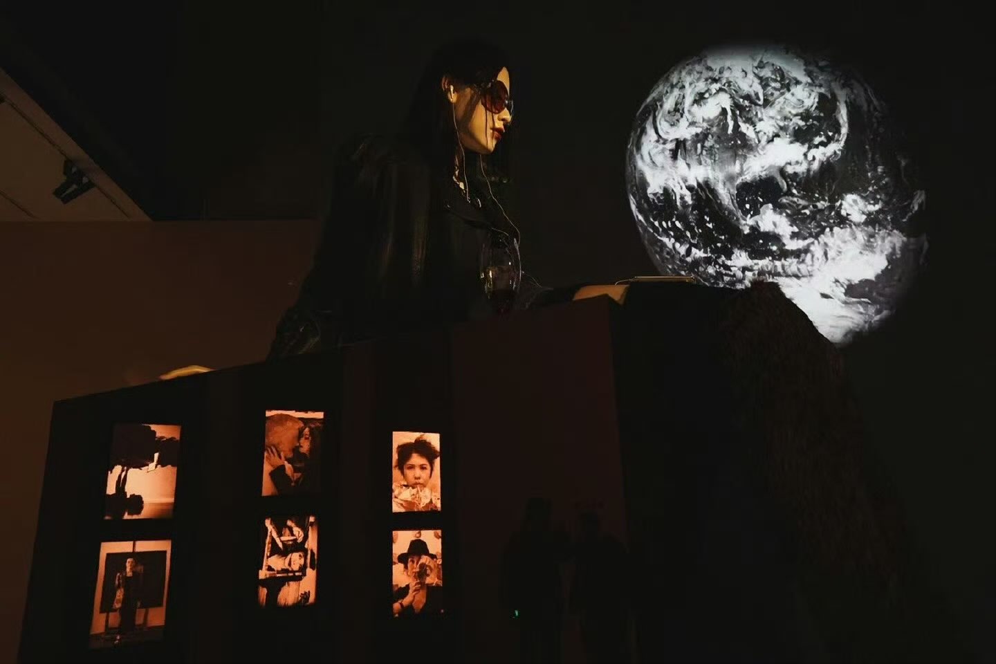 《深梦》呈现了一个奇特的场景:静态的巨大Lili坐在玻璃舞台之上,背后利用AI技术生成的“动态”Lili正在展示她的生活碎片,电影语言、数字技术与艺术现场在这里交织,带来极致的虚幻和极致的真实。步入《深梦》,总让人联想起《庄子·齐物论》:“不知周之梦为胡蝶与,胡蝶之梦为周与?”